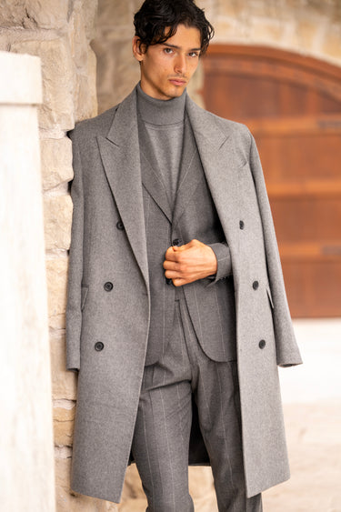 Slim Fit Yün Karışımlı Kruvaze Gri Majestic Palto