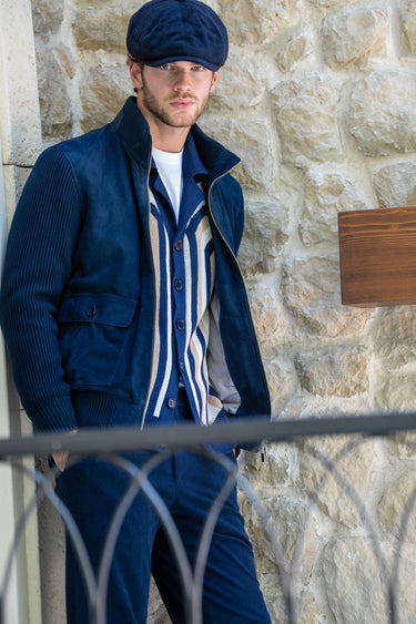 Standart Fit İtalyan Kumaş Lacivert Fitilli Kadife Pantolon