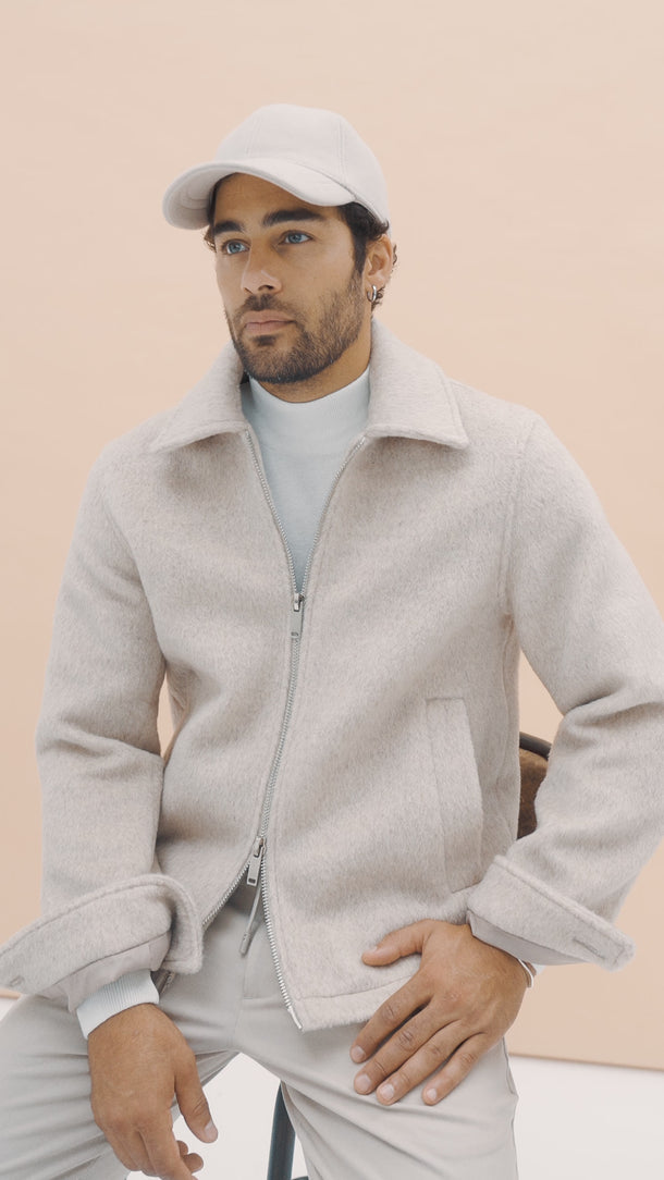 Standart Fit Yün Karışımlı Bej Kısa Alpaca Mont