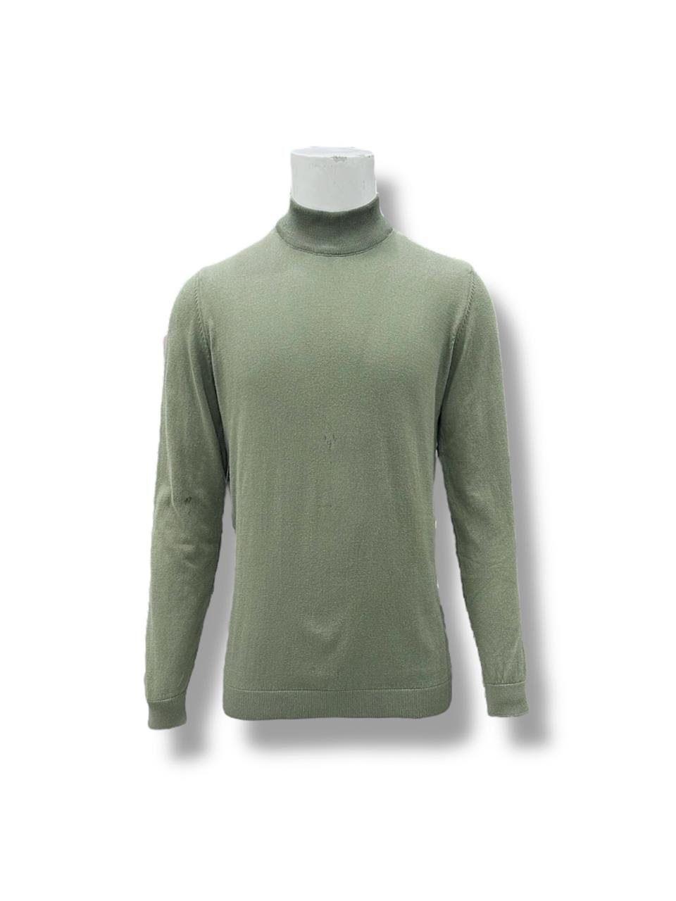Haki Standart Fit Yarım Balıkçı Pamuklu Triko Kazak