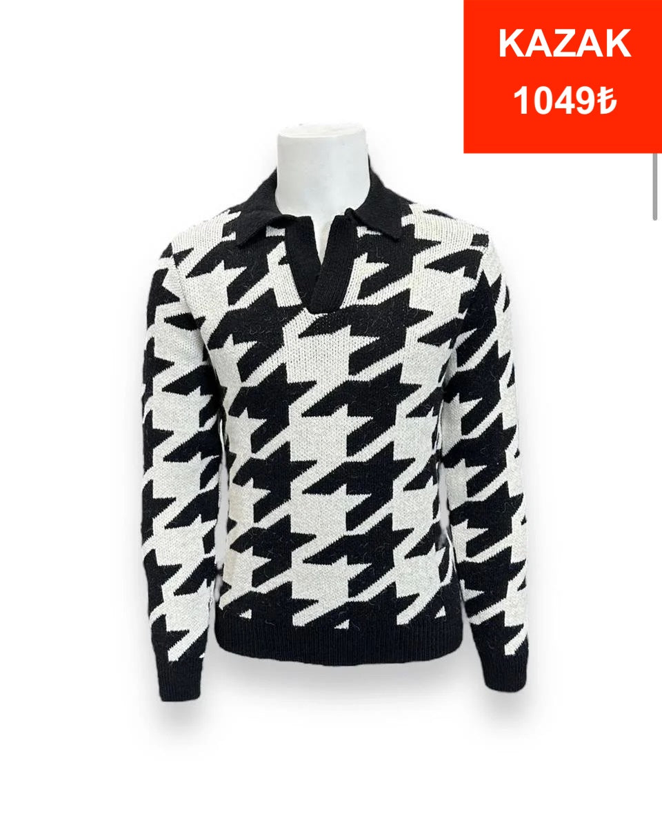 The Hampton sweater combines classic elegance with a modern twist thanks to its houndstooth pattern. Its standard fit offers all-day comfort, while the collared design adds a neat and strong look to winter outfits. Suitable for everyday wear and smart casual combinations, this model is an ideal option for those looking for discounted men's sweaters.