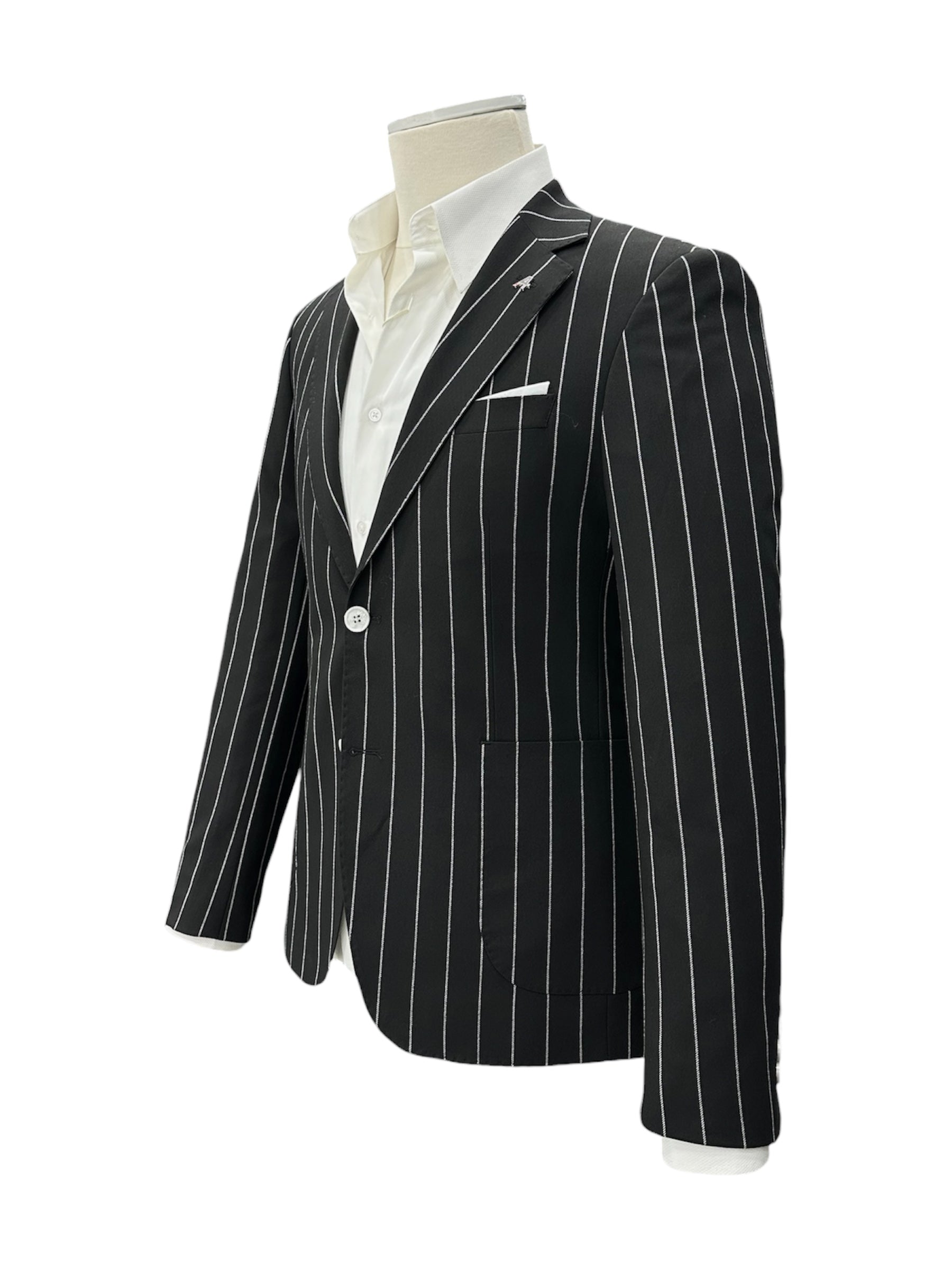 Geniş çizgili, iki düğme ceket.
