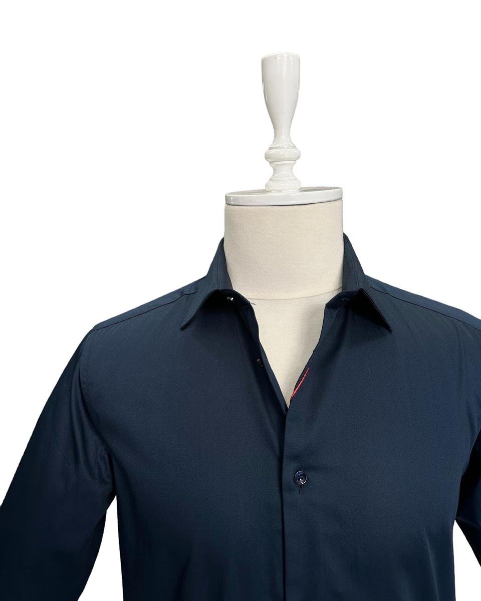 Slim Fit Navy Blue 100% Cotton Satin Shirt