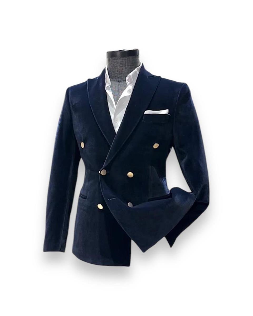 Velvet, a symbol of elegance, is available as a single-breasted double-breasted jacket.