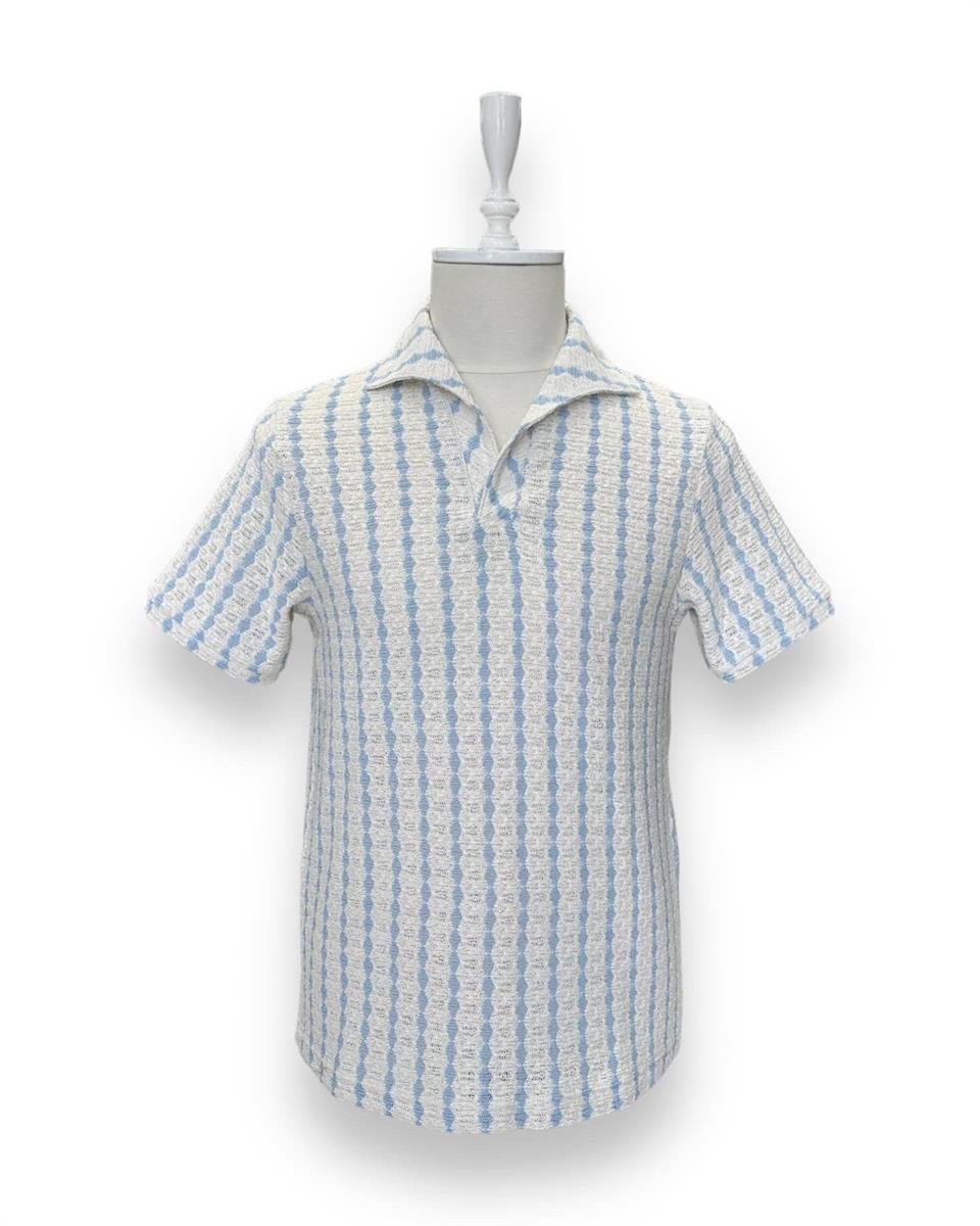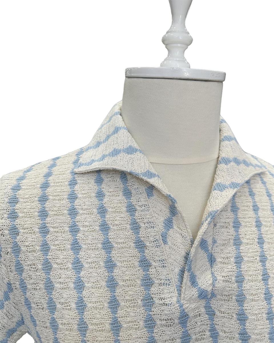 Mesh knit, collared t-shirt.