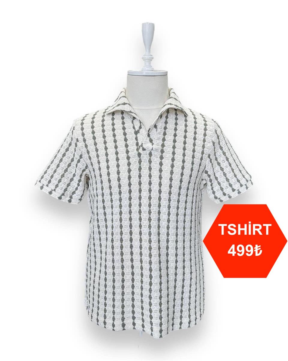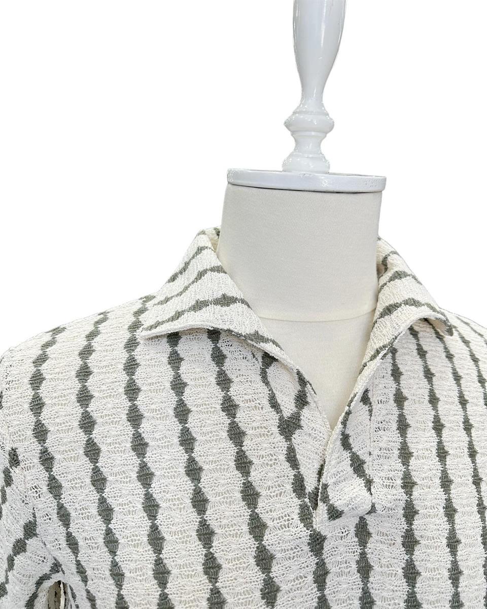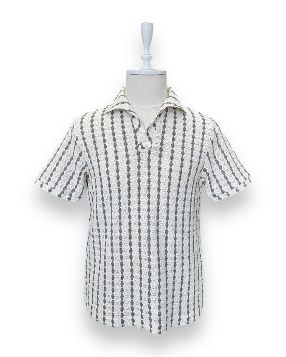 Mesh knit, collared t-shirt.