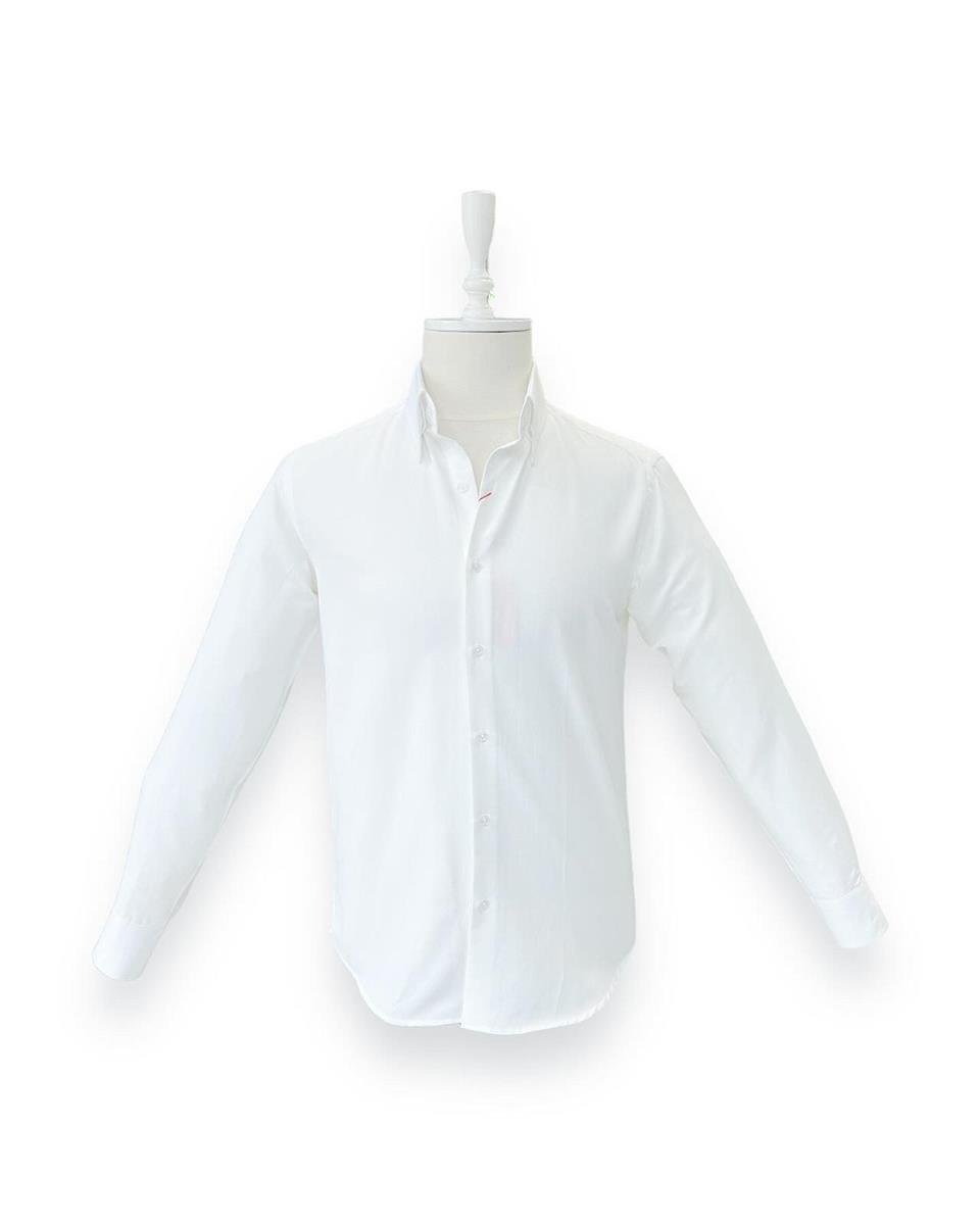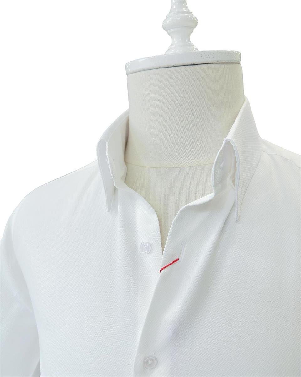 A stand-collar shirt with hidden buttons below the collar adds a stylish touch to jackets or suits.