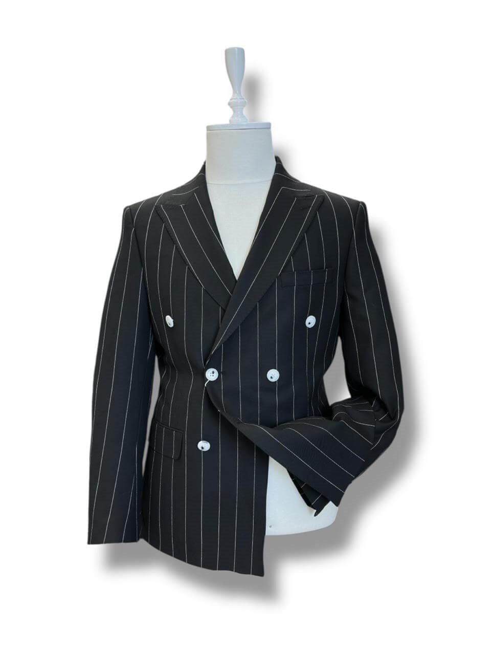 This black, double-breasted, striped jacket, made from lycra fabric and available at 4akc.com, offers both style and comfort. It allows you to achieve a chic and unique look at any time of day. With this exclusive design, only available at 4akc.com, you can showcase your personal style. Featuring high-quality fabric and a modern design, this jacket is poised to become an indispensable part of your wardrobe. Complete your look with this jacket from 4akc.com's wide product range and attract attention wherever you go!