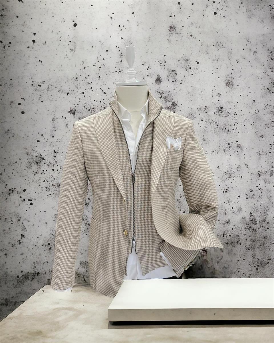 The houndstooth patterned single jacket available at 4akc.com is an ideal choice for those seeking elegance and style. Its patch pocket design offers both practicality and a chic look. This jacket, which can also be combined with its matching zippered vest, easily adapts to different styles. Made from high-quality materials, this jacket is suitable for both everyday wear and special occasions. The zippered vest is also sold separately and can be ordered from the vest section. You can discover and easily purchase options that suit your style from 4akc.com's wide range of products.