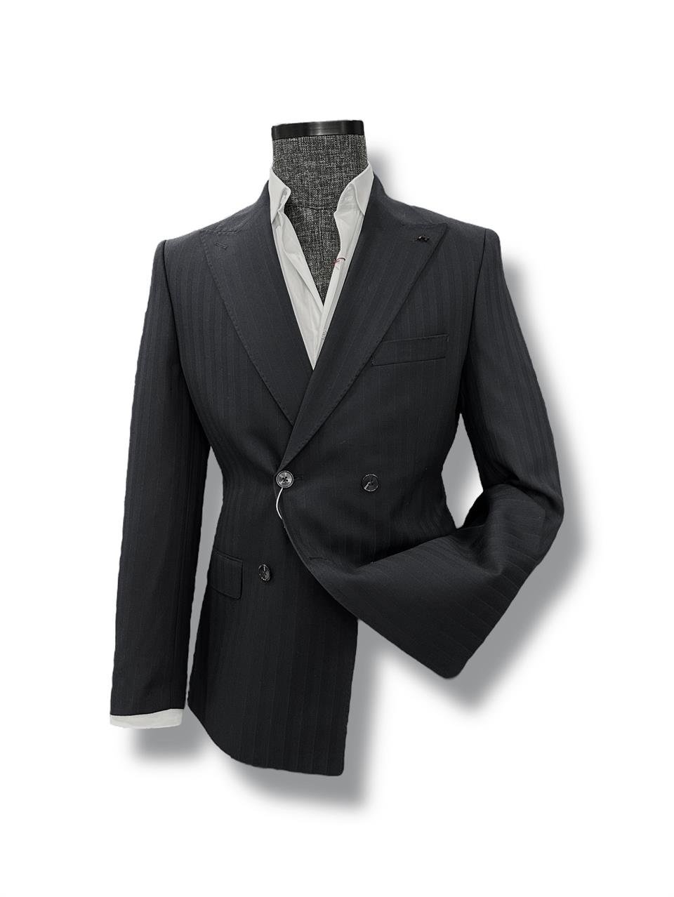 Black Shadow Striped Slim Fit Double-Breasted Suit