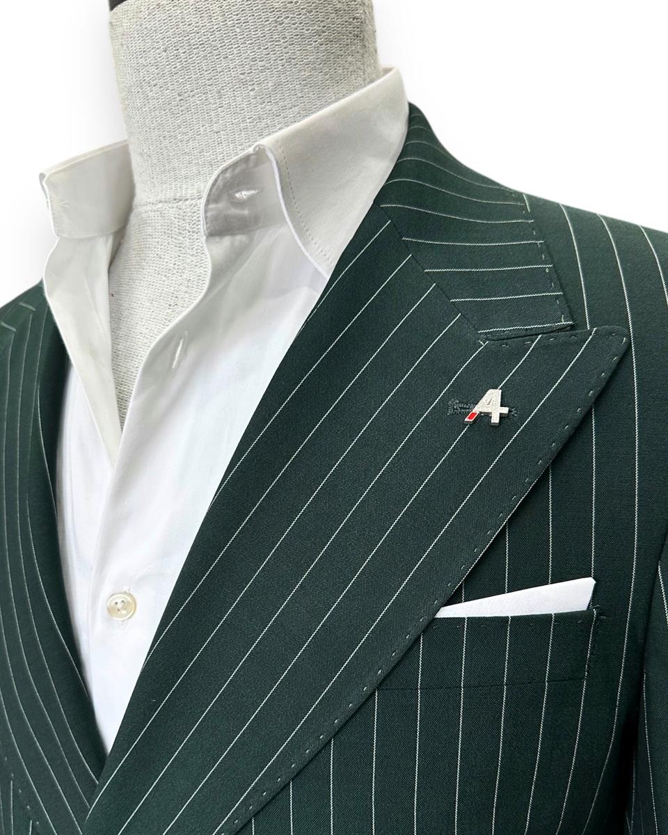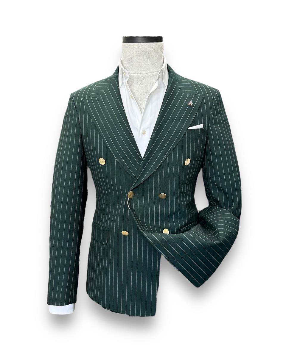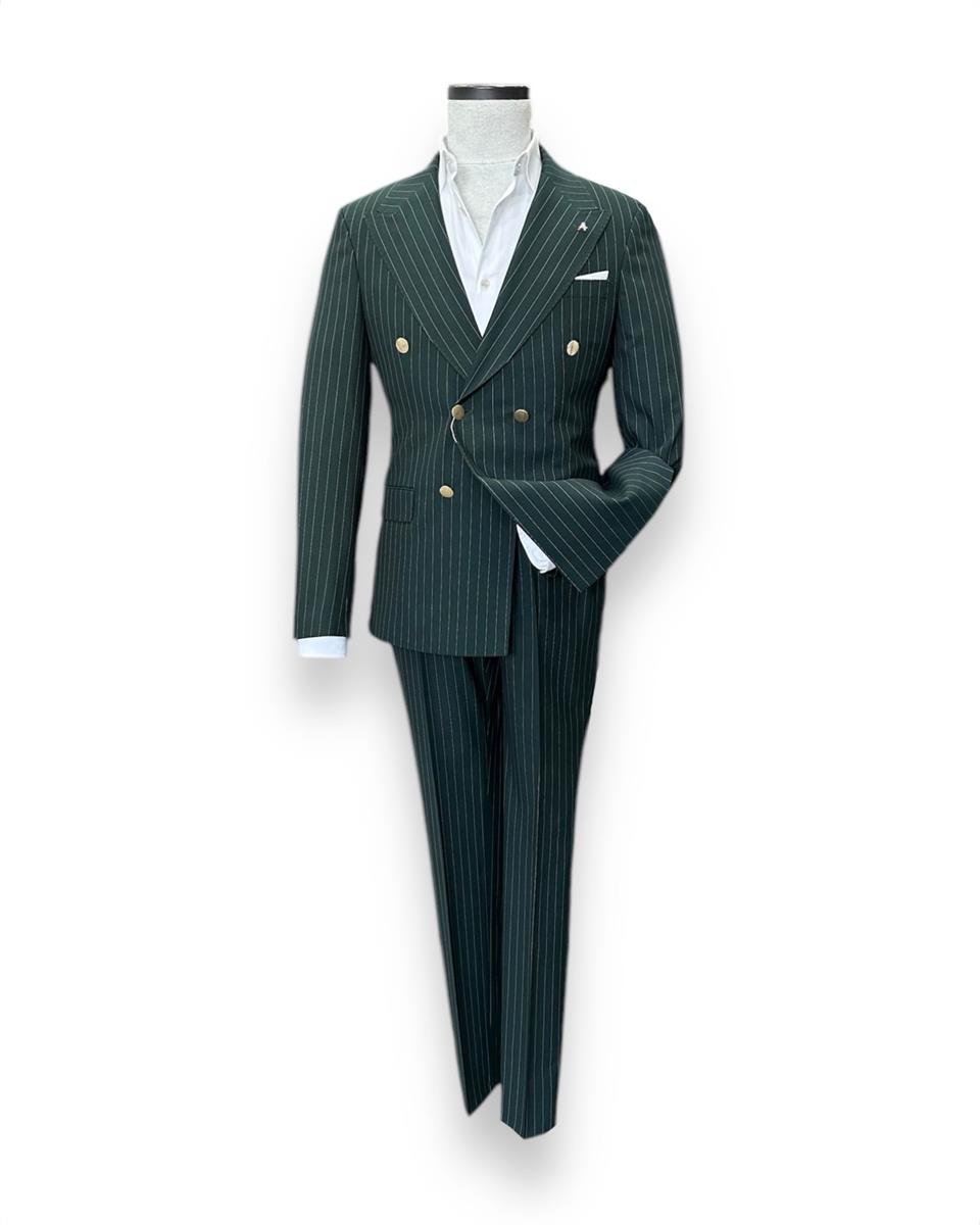 The slim-fit double-breasted suit available at 4akc.com offers both style and elegance. Featuring a clean line and gold-colored buttons, this suit allows you to create a striking outfit. The wide double-breasted collar and double vent details provide a modern and chic look. By choosing this suit, you can confidently express yourself at any special event or business meeting. Reflect your style and feel special with this item from 4akc.com.
