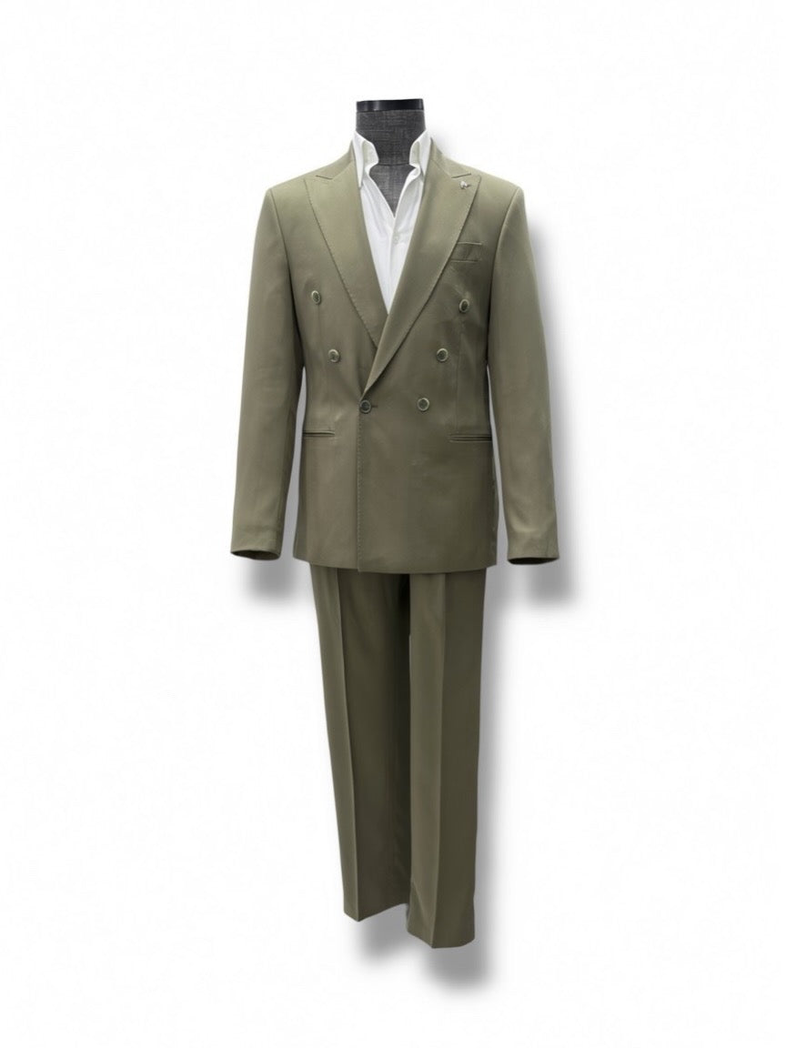 Loreno Haki Kruvaze Takım Elbise – %96 Tencel %4 Elastane