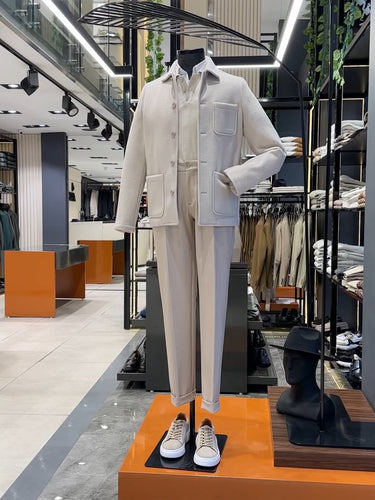Standart Fit İtalyan Kumaş Bej Fitilli Kadife Ceket
