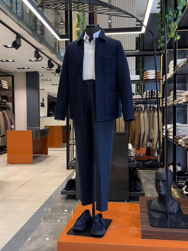 Standart Fit Düğmeli Kaşe Mavi Kael Mont