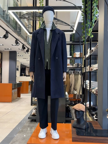 Oversize Kruvaze Kaşe Lacivert Mattia Kaban
