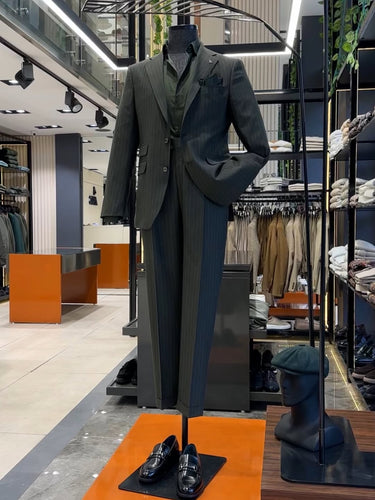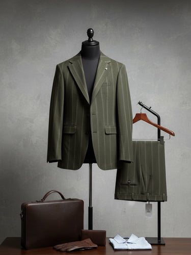 Standart Fit Çizgili Haki Erkek Gentle Takım Elbise