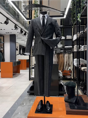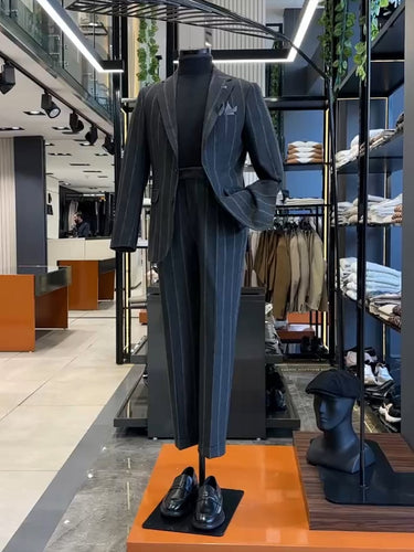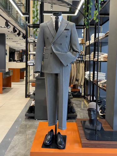 Standart Fit Çizgili Gri Erkek Gentle Takım Elbise